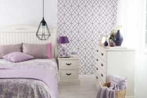- Vinilo o cinta: en muchos grandes almacenes podemos encontrar vinilos con formas geométricas, colores o estampados a un buen precio. La idea sería tener la habitación de un color suave y colocar este papel sobre la pared que quieras darle mayor protagonismo
