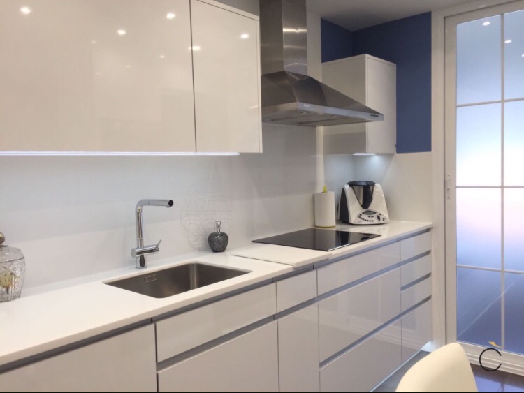 Una de ellas es el aspecto de higiene que proporciona, ya que el blanco se identifica con higiene y pureza, y que mejor que en una cocina. Aunque también diréis que el blanco resalta rápidamente las manchas, pero hay materiales que resisten a humos, grasa… y que a su vez no son difíciles de limpiar. Además, los muebles con acabado mate hacen que no se noten las marcas o huellas.